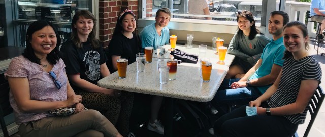 July 2022 Taking a summer lunch outing together. Several items to celebrate including the lab’s successful renewal of a large NIH grant, woohoo!!! Joined in remotely: Ethan Bedsole.