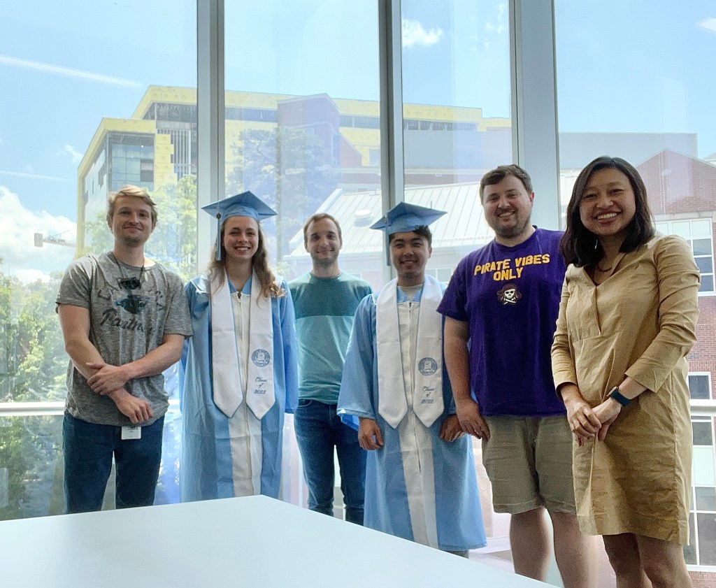May 2022 Congratulations to our own undergraduate researchers Caroline Spencer and John Zhu from graduating UNC with flying colors this year! We are excited that Caroline and John will be staying on in the Shiau Squad as research assistants to further their research developments and adventures.