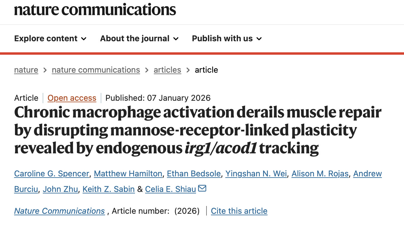 Caroline G. Spencer*, Matthew Hamilton*, Ethan Bedsole, Yingshan N. Wei, Alison M. Rojas, Andrew Burciu, John Zhu, Keith Z. Sabin and Celia E. Shiau. Nature Communications (2026).